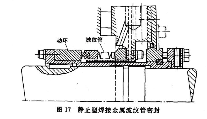 動(dòng)環(huán)可分為非補(bǔ)償型和補(bǔ)償型兩種。在靜止型機(jī)械密封中,采用非補(bǔ)償型動(dòng)環(huán),這種動(dòng)環(huán)緊固在軸上(圖17),有的用軸套壓緊在軸上(圖3),明顯可見,這類動(dòng)環(huán)不能浮動(dòng)。