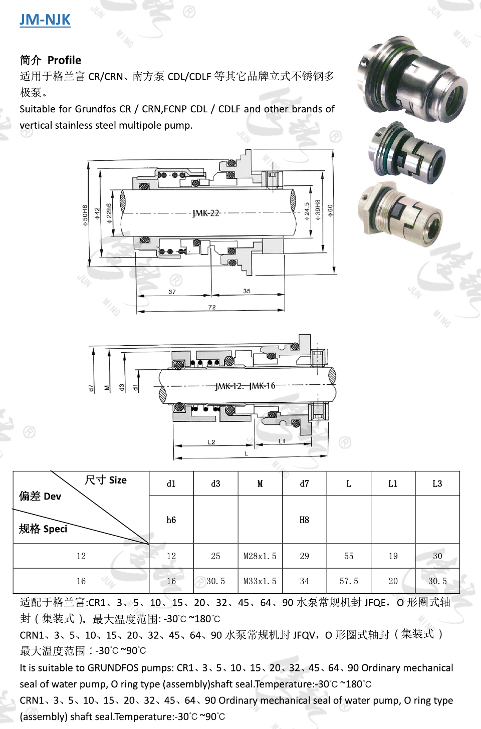 適用于格蘭富CR/CRN、南方泵CDL/CDLF等其它品牌立式不銹鋼多極泵。