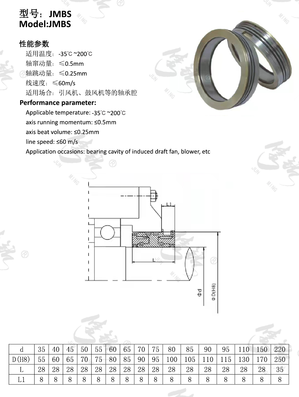 ○適用場合:引風機、鼓風機等的軸承腔